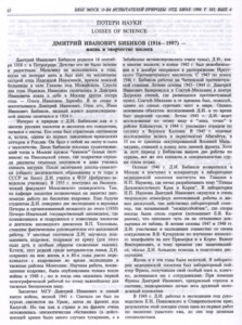 Осенью 1946 года вернулся в Москву, поступил в аспирантуру в лабораторию медицинской зоологии института им. Гамалеи к Н.П. Наумову. Весной 1950 года после окончания аспирантуры и защиты кандидатской диссертации Дмитрий Иванович переехал а Алма-Ату на работу в Алма – Атинский противочумный институт. Широкое изучение сурков началось именно в Алма-Ате. В 1965 году Бибиков защитил докторскую диссертацию. В последующие годы вышли монографии: «Горные сурки Средней Азии и Казахстана», «Природные очаги чумы сурков в СССР», «Сурки». Не менее чем как выдающийся знаток сурков, известен Дмитрий Иванович как специалист по волку. Он стал сопредседателем рабочей группы по волку МСОП. Итогом его работы стала великолепная монография «Волк». В последние годы Дмитрий Иванович активно работал над книгой о сурках мира, изданной в 1996 г. в Германии на немецком языке и готовившейся к выходу на английском. Он также возглавил подготовку коллективной монографии «Беличьи и летяги» в серии «Звери России и сопредельных государств». И хотя возраст и напряженная работа начали сказываться на здоровье Дмитрия Ивановича, он плодотворно работал, часто публиковался как исследователь и как популяризатор научного подхода к проблеме охраны природы и рационального использования ее ресурсов, пропагандируя экологически взвешенный подход, исключающий крайности, независимо от того касается ли проблема сурков или волка. До конца своих дней он оставался объединяющим центром для очень многих зоологов разных поколений.