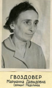 В начале войны окончила курсы медсестер МГУ.Всю войну прослужила в военно-морском госпитале Ленинграда сержантом медицинской службы (с октября 1941 г. по октябрь 1945 г.).