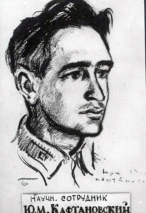 В начале октября 1941 года был призван в армию как офицер запаса, был назначен адъютантом батальона одного из стрелковых полков. В ночь с 3 на 4 февраля 1942 года часть, где служил Кафтановский участвовала в боях в Смоленской области. Юрий Михайлович был смертельно ранен. Похоронен на месте боя.