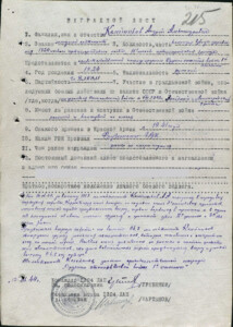 …Первое ранение я получил под селом Духовщина Смоленской области в августе 1943г. Шел к наблюдательному пункту, немцы открыли минометный огонь, залег на огороде между грядками, закрыл руками голову, вдруг что-то упало на спину. Когда немцы огонь прекратили, то я увидел, что на мне лежит забор, а по спине стекает струйка крови. Сделали перевязку, но осколок мины так и остался навсегда в спине. Был я командиром взвода управления. Под моим началом было 5 человек, из них и были составлены 3 отделения: связи, радио и разведки. Командир такого взвода всегда впереди батареи со стереотрубой, всегда в первой цепи пехоты, а иногда даже и на нейтральной полосе. Взвод управления нужен для того, чтобы вызвать на себя заградительный огонь, когда немцы шли в атаку. Закончил я Рязанское артиллерийское училище (9-ти месячные курсы) в конце 1942 г. Потом попал в полк легкой артиллерии №1324. Какое-то время стояли в учебных лагерях под Коломной. В начале августа 1943 г. из-под Коломны двинулись своим ходом в район Духовщины Смоленской области. Рядом с нами в местечке Холм-Жирковский стояла польская дивизия им. Т. Костюшко. Нас расположили недалеко от них. Немцы нещадно бомбили расположение польской дивизии. Однажды в перерыве между бомбежками увидел вблизи бабу немыслимых размеров в форме польского полковника. Мне потом сказали, что это была польская писательница Ванда Василевская (автор знаменитой «Радуги», 1942 г.). Бомбили часто и нас. Было страшно. После Рудни были тяжелые бои под Витебском. А весной 1944 г. нас отправили в Финляндию. И вот второй штурм знаменитой неприступной лини Маннергейма. Ошибки первой неудачной попытки (это было в 1939 г.) были учтены. На этот раз атаке предшествовала могучая многочасовая артиллерийская подготовка. На один километр приходилось свыше 250 стволов, и это, не считая минометов, «Катюш» и штурмовой авиации. Далее Выборг. Подошли к системе каких-то озер. И там произошел нелепейший случай. Солдат моего взвода подорвался на мине. Подобравшись к нему, я обезвредил 6 противопехотных мин. Для того, чтобы поднять раненого, я должен был сделать шаг. Ставлю ногу на землю, одновременно замечаю, что трава подвяла, но уже поздно: поднимаю раненого. Не понимая, что происходит, я ставлю ногу – гремит еще один взрыв… У меня был нож, финский, трофейный. Смотрю на свою правую ногу – стопа висит на жилах. Ножом отрезал стопу. Дальше – ничего не помню. Потом были госпитали, операции. Так для меня закончилась война.
