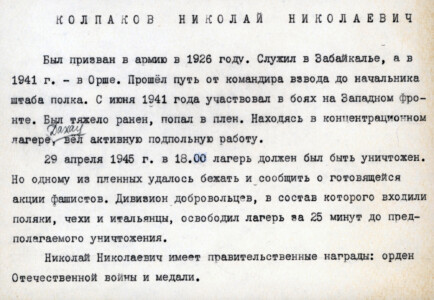 Н.Н. Колпаков награжден орденом Отечественной войны II степени, медалью «За победу над Германией».