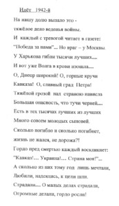 Далее — война, эвакуация, трудности и беды. Жизнь сложилась так, что вторым родным городом стала Москва. Окончила Московский Университет, работала 50 лет в научно-исследовательских институтах. Доктор наук.