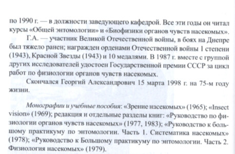 Как инвалид Отечественной войны, Г.А. был демобилизован в 1944 г. и поступил в Московский университет, который закончил по кафедре энтомологии в 1949 г.