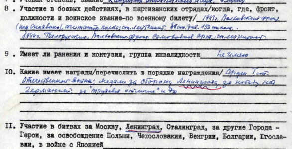Дважды был награжден орденом Отечественной войны I степени, медалями «За оборону Ленинграда», «За победу над Германией», «За доблестный труд» и юбилейными медалями.