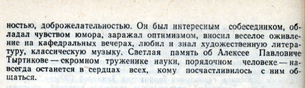 Умер А.П.Тыртиков 20 июля 1989 г.