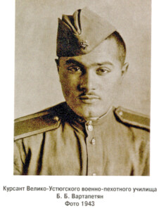 В конце 1943 года, после окончания Велико-Устюгского военного училища младший лейтенант Б. Вартапетян был направлен на 1-ый Прибалтийский фронт в должности командира минометного взвода, а затем офицера связи 353 стрелкового полка 47-ой стрелковой дивизии. Участник освобождения Белоруссии. В июле 1944 года во время штурма города Полоцк Б. Вартапетян был тяжело ранен и до 1946 года находился на излечении в военных госпиталях. Имеет 21 правительственную награду, включая два ордена Отечественной войны.